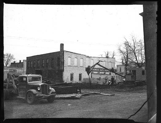 thumb|250px|left|Howard Auto Sales in 1969Harriet’s daughters leased the north half of Lot six to Shell Petroleum Corporation on December 1, 1935. The gas station had to pay one hundred eighty dollars a year until 1940. On November 30, 1943, the Hulley daughters sold all of Lot six for six thousand dollars to J. Dalton Howard and his wife Hazel Howard. This is where Howard Auto Sale’s name originated. In 1948 the Howard’s spent twenty thousand dollars to build the car dealership you see today. The Howard’s actually built the Howard dealership around the old brick building, and in the attic you can actually see the brick wall from the old building. Later in 1948 36, 200 dollars was spent to build the service center on the back of the Howard dealership. Finally in 1955 the Howard’s bought half of Lot seven, which is now used as the used car lot (Grant County Abstract). After Howard Dalton died on March 6, 1975, Sam Orville and Don Powell bought Howard Auto Sales. Sam and Don owned the dealership until 1991 when the Burnett family bought it and still own it today.