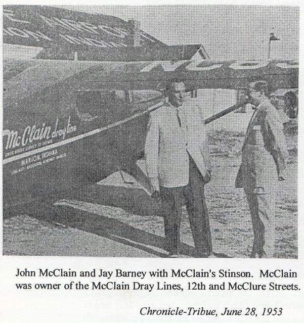 | 13:35, 20 June 2007 | West Side Airport(1953).jpg (file) | 118 KB | Rmlucas | West Side Airport Photograph - John McClain and Jay Barney with McClain's Stinson from Chronicle-Tribune, June 28, 1953 | 1 | |