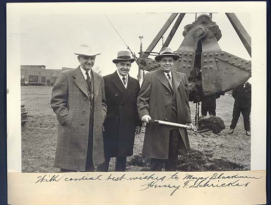 | 11:20, 23 June 2007 | V003512r.jpg (file) | 45 KB | Black & white photo shows Mayor Willard G. Blackman with a shovel full of dirt and the bucket of a machine behind him. Henry Schricker is with him along with L. W. Teegarden. This is the groundbreaking ceremony for the remodeling of the new RCA plant in M | 1 | |