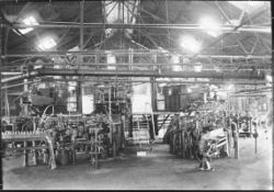 A name change ensued in 1929, when the company became Foster-Forbes Glass Co. This name combined the last names of A. M. Foster and Mr. William C. Forbes, who had been an associate of Mr. Foster since 1900. (History of Foster-Forbes..., 1) In 1933 Standard Glass Co. was acquired. Standard Glass was a direct competitor with Foster-Forbes, and since its property was adjacent to the Foster-Forbes factory it seemed appropriate to incorporate it into the further expansion of the Foster-Forbes empire. When Standard Glass was acquired it was modernized by the addition of a new furnace and new machines to increase productivity. After this Standard Glass Co. was dissolved and became a unit of Foster Forbes.